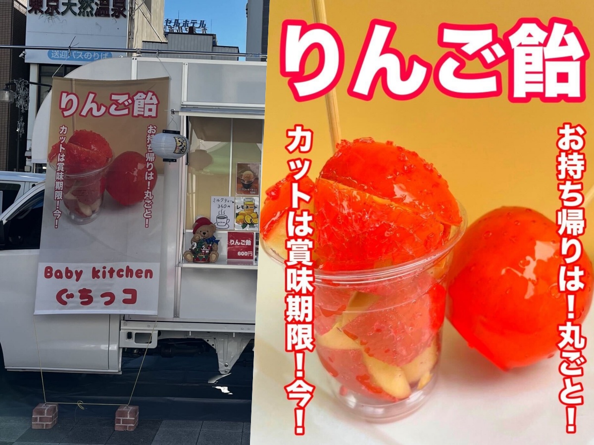 とても珍しい生ベビーカステラ、SNS等でも大人気のカットりんご飴とホールりんご飴!りんごにもこだわり、リピート率の高い商品となっています。